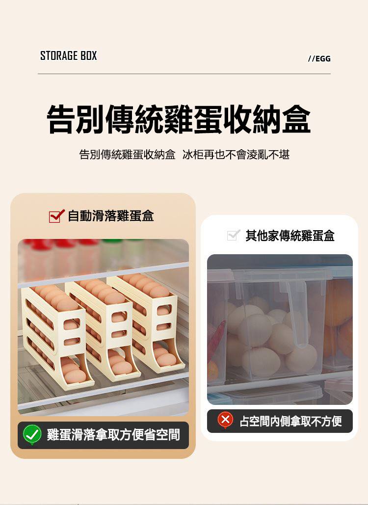 5分鐘前自動滾蛋式雞蛋收納盒 - 3入组(可放90個雞蛋)NT$1098